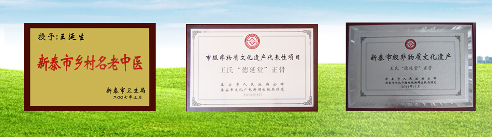 ,男,王氏七代中医骨科大夫,医术精湛、先后被卫生局授予“新泰市乡村名老中医称号”,载入《山东非物质文化遗产新泰市卷》。授匾锦旗几百多幅……